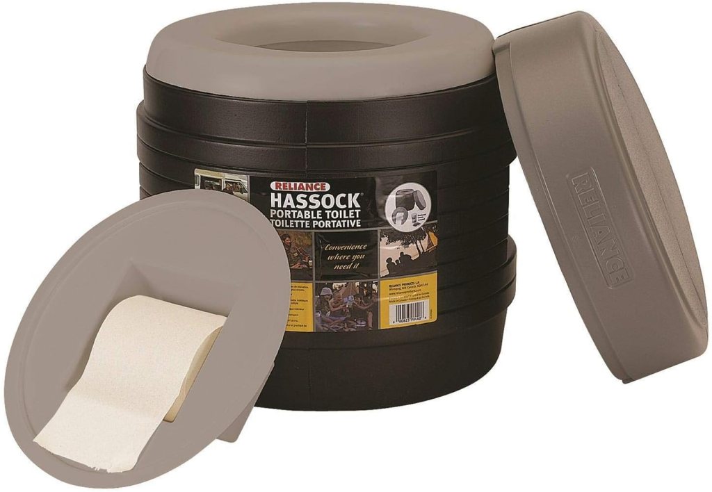- Designed for camping and boating; five-year warranty against manufacturer’s defects.Hassock portable toilet includes a free sample of Bio-Blue