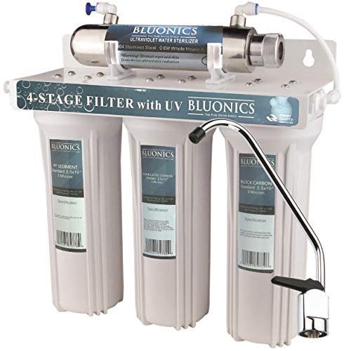 Bluonics 4 Stage Drinking Water Filter UV Ultraviolet Light Purifier for Bacteria Under Sink Filtration System