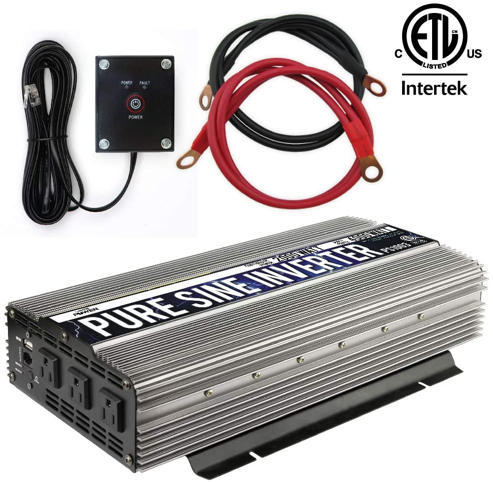 - GoWISE Power PURE SINE Power Inverter 2000W Continuous/4000W Surge, 12V DC to 120V AC w/ Black and Red Cables w/ Ring Terminals, Remote Switch, 5 kinds of Protection Systems and 4 Output Sockets