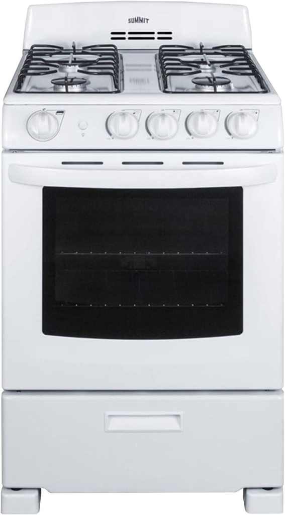 Summit RG244WS 24“” Freestanding Gas Range with 2.9 cu. ft. Oven Capacity Electronic Ignition High Backguard Broiler Drawer