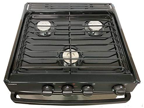 AMZCHEF 17 Inch Gas Range Stove 12V, Ideal for RV Use with 3 Burners, 1.24 Cu.Ft. Capacity Gas Oven, 28,100BTU, Open Flame Configuration
