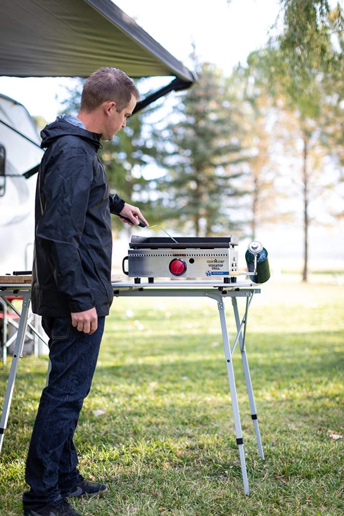 Camp Chef Versatile Portable Flat Top Grill is s small portable camp stove you can carry in your Mercedes camper van or RV and enjoy all the cooking comforts of home while camping in our campervan.