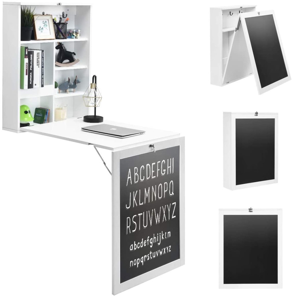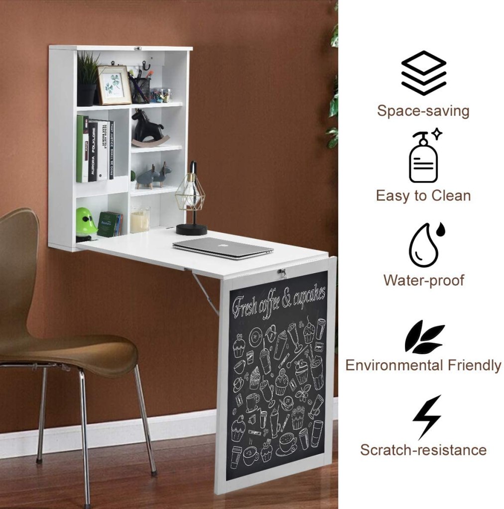 Tangkula Wall Mounted Table, Fold Out Convertible Desk with A Chalkboard