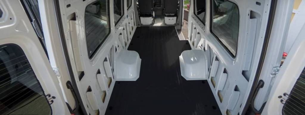 Installing insulation on a van floor is quite easy. FatMat Self-Adhesive can be cut and place in between the small structure groves on the floor to help with noise. Then apply Mass Loaded Vinyl on top covering the entire floor surface. Then proceed with whatever floor you decide.