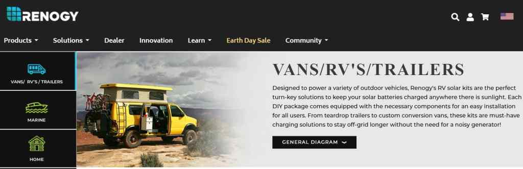 RENOGY offers complete solar kits for van campers. Power your adventures with the sun.