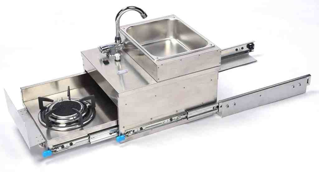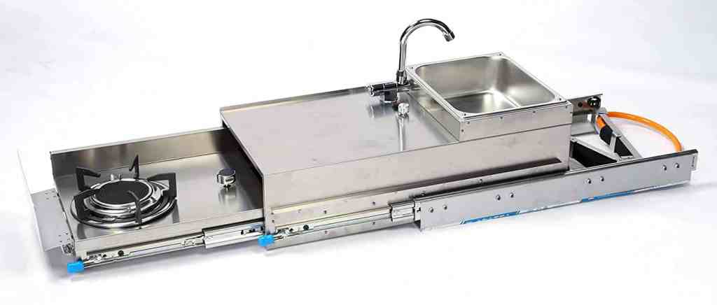 I know some of us don’t have the tools or the skills to build a full kitchen galley from scratch in a Van camper. So when I came across this cool unit I thought this could help a lot of camper van owners out in this area. These pull out camper van sink stove combos are designed for use in boats. Their compact design takes up less space and are build very strong out of top quality materials for long use.
