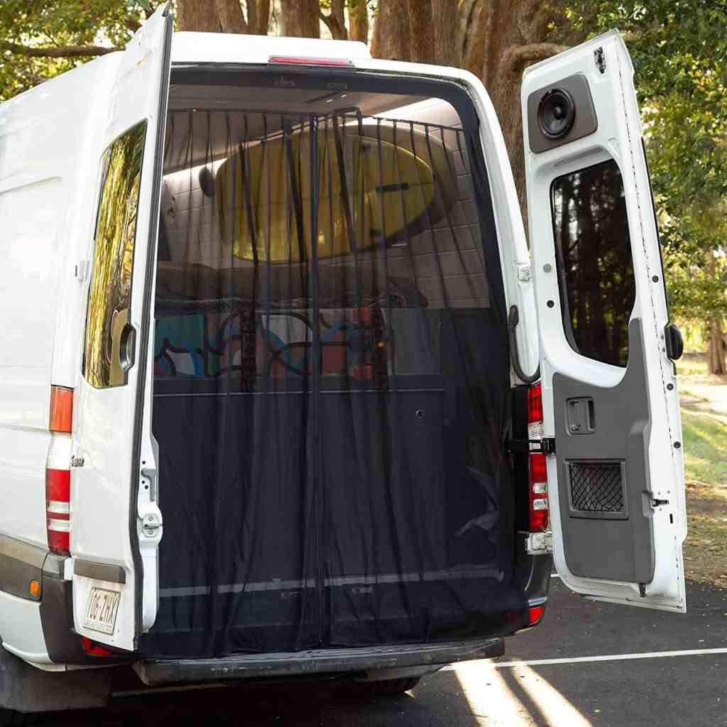 - NO INSTALLATION REQUIRED. This bug screen for your van is easy to use and can be self-installed. The MAGNETIC MOSQUITO SCREEN is perfect for the back of your van or barn door with a center opening that closes with a double full zipper. Make your van a camping tent with this fly net.