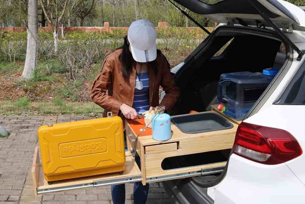 An all-in-one slide-out kitchen galley can be a great addition to your camper van, Jeep, or truck, providing you with an instant kitchen setup and a gas stove cook space. Here’s how to set up an all-in-one slide-out kitchen galley:
