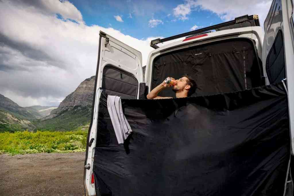 Elevate Your Van Camping Experience with VanEssential’s Adjustable Rear Door Shower/Changing Curtain for Mercedes-Benz Sprinter