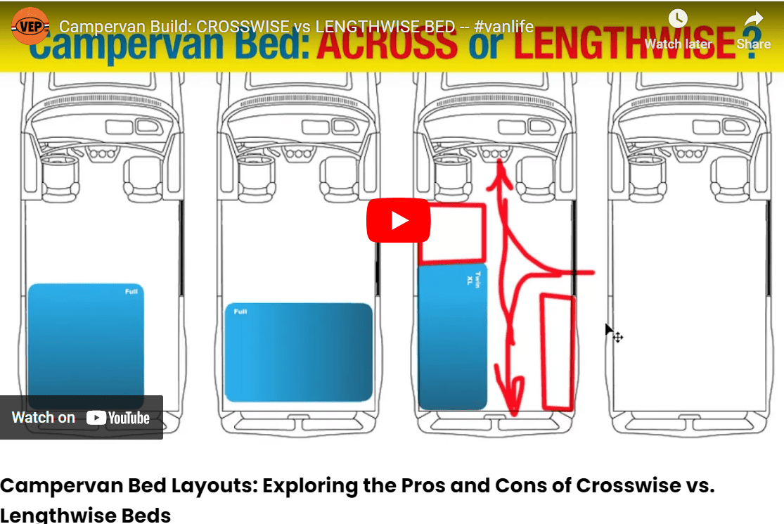 Conclusion: When planning a campervan build, the choice between a crosswise and lengthwise bed layout is a crucial decision that will impact the overall design and functionality of the interior space. While both layouts offer distinct advantages and drawbacks, ultimately, the best choice depends on your individual needs, preferences, and the specific dimensions of your van. By carefully considering the pros and cons of each layout, you can create a campervan interior that maximizes comfort, efficiency, and enjoyment on the road.
