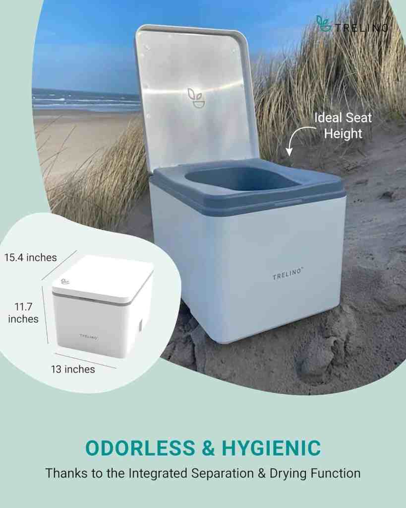 TRELINO Composting Toilet Evo | Portable Toilet for Camping & Outdoor | Odorless | Toilet for Camping Vans