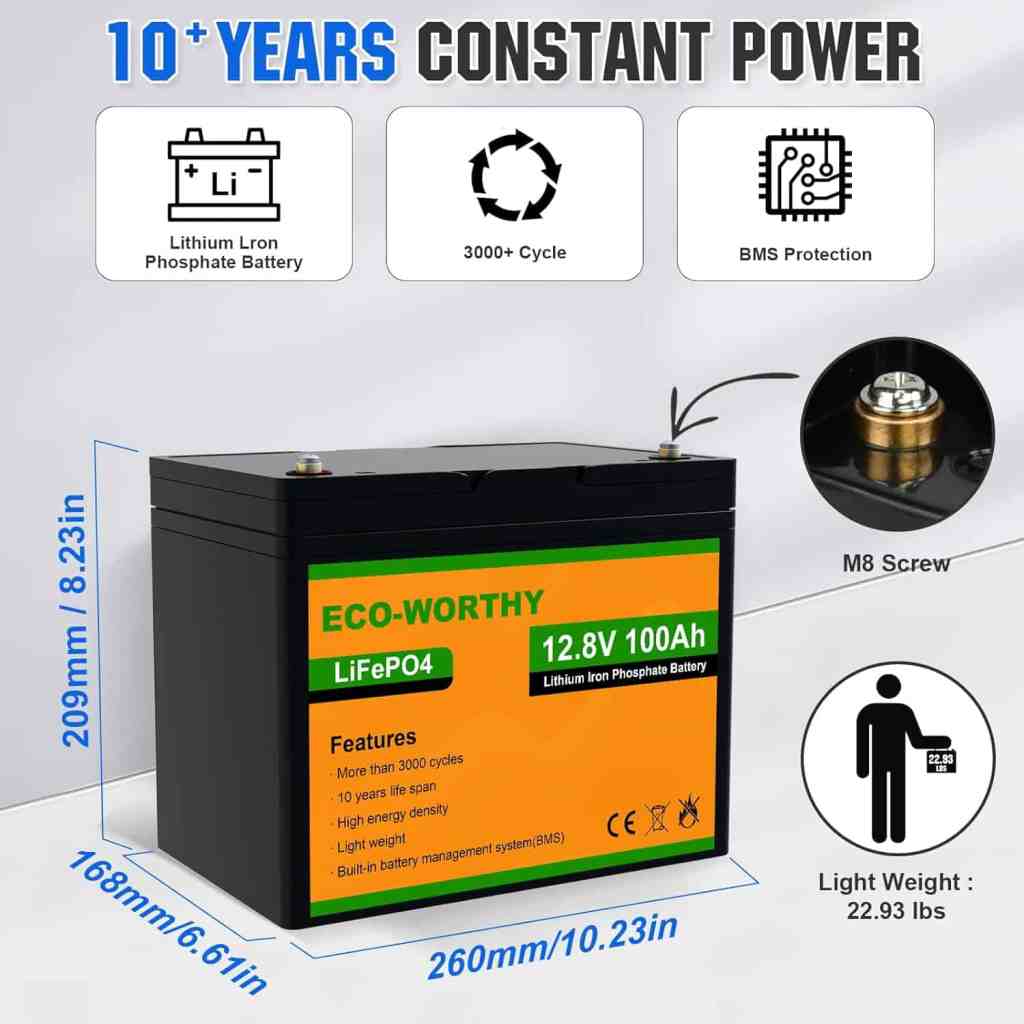 ECO-WORTHY 12V 100AH Mini Size Group 24 LiFePO4 Lithium Battery with BMS