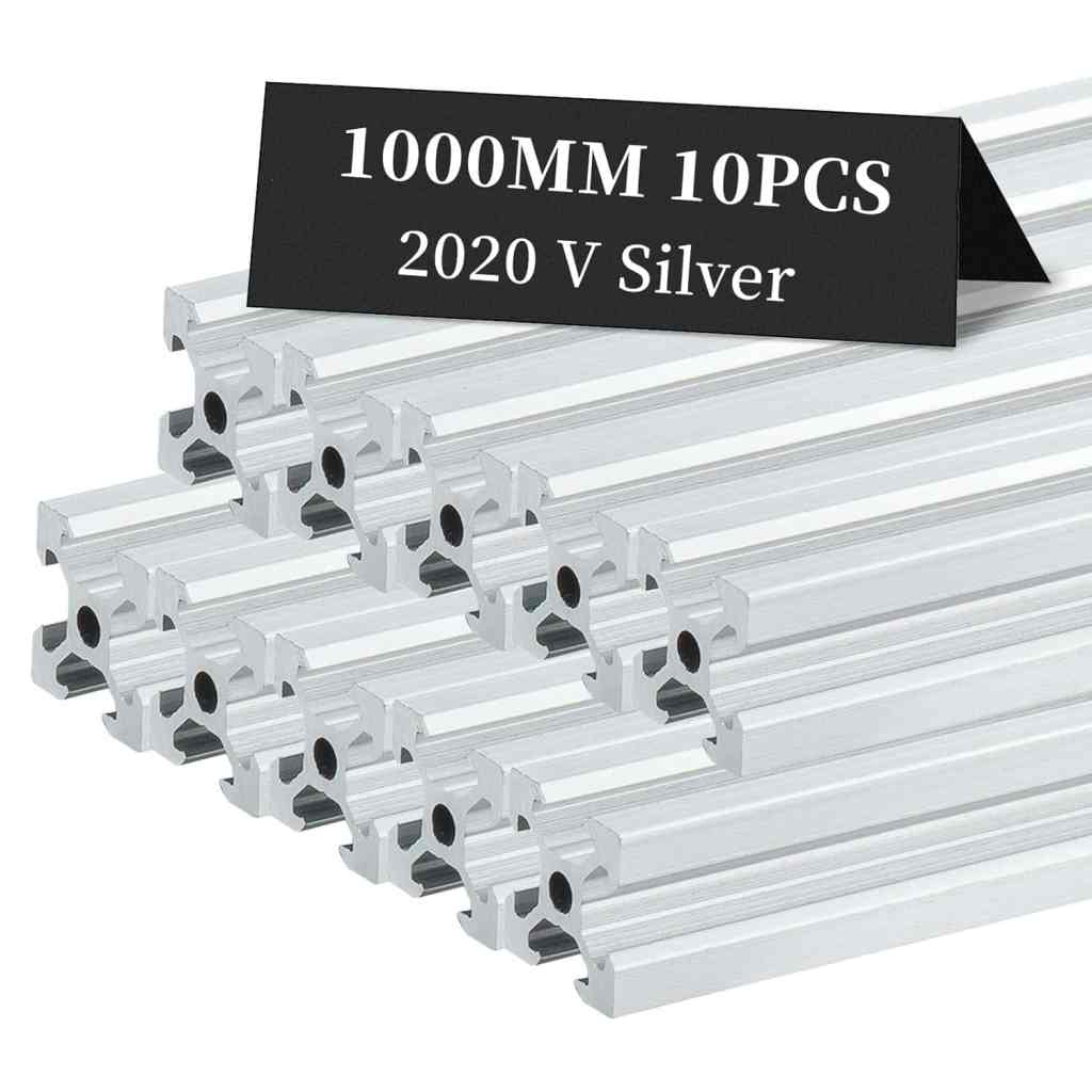 BELLA BAYS 10pcs 39.37 inch 1000mm 2020 V Slot Aluminum Extrusion Profile European Standard Anodized Silver Extruded Linear Rail Guide Frame