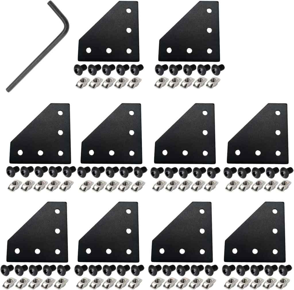 10Pcs 2020 Corner Bracket Joint Plate L Shape 5 Hole Aluminum Extrusion Connector with 50Pcs T-Nuts, 50Pcs Screws and 1Pcs Wrench for 20 x 20mm