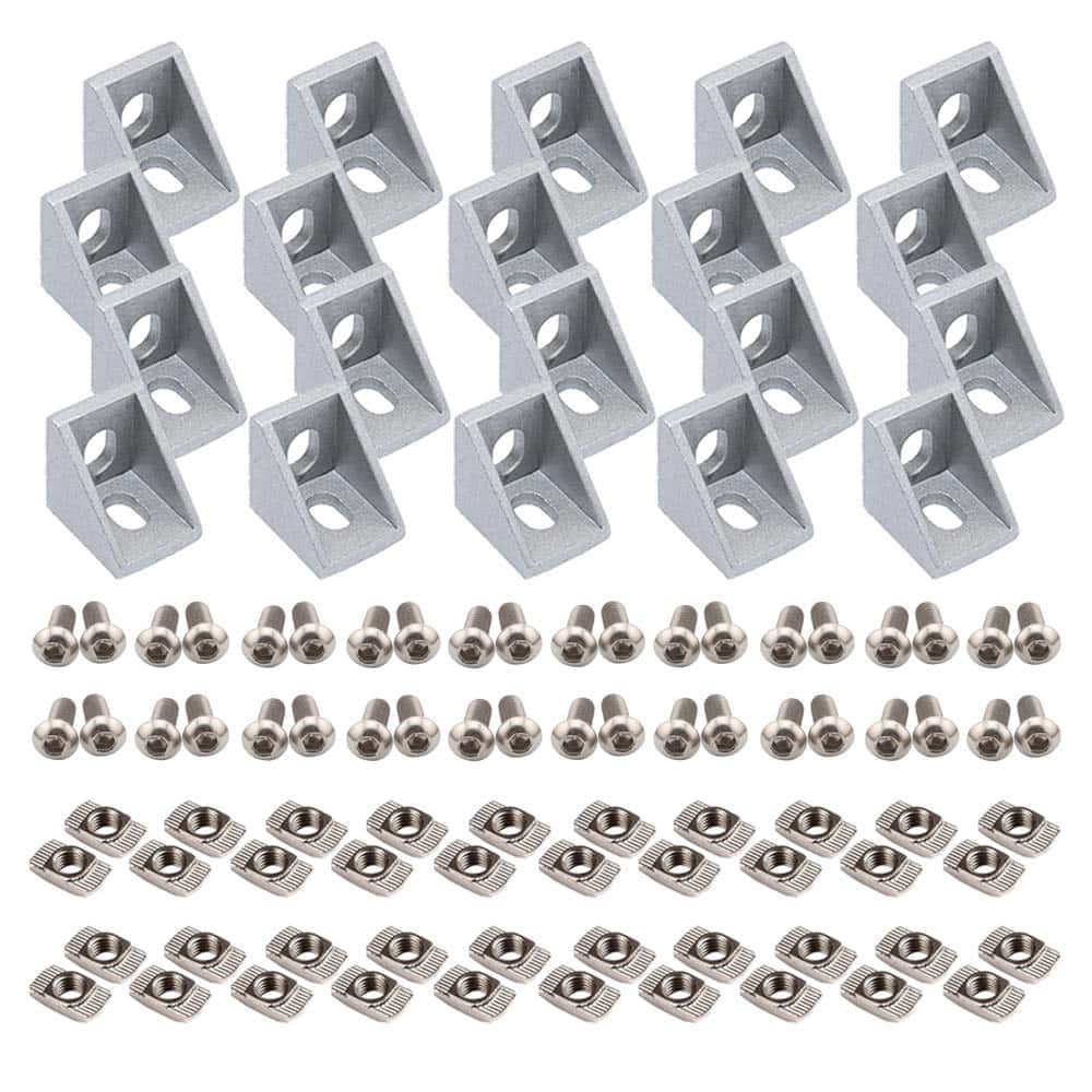 2020 Series Aluminum Profile Connector Set, 20pcs Corner Bracket, 40pcs Drop in T Nuts and Hex Screw Bolt for Slot 6mm 20S Aluminum Extrusion Profile