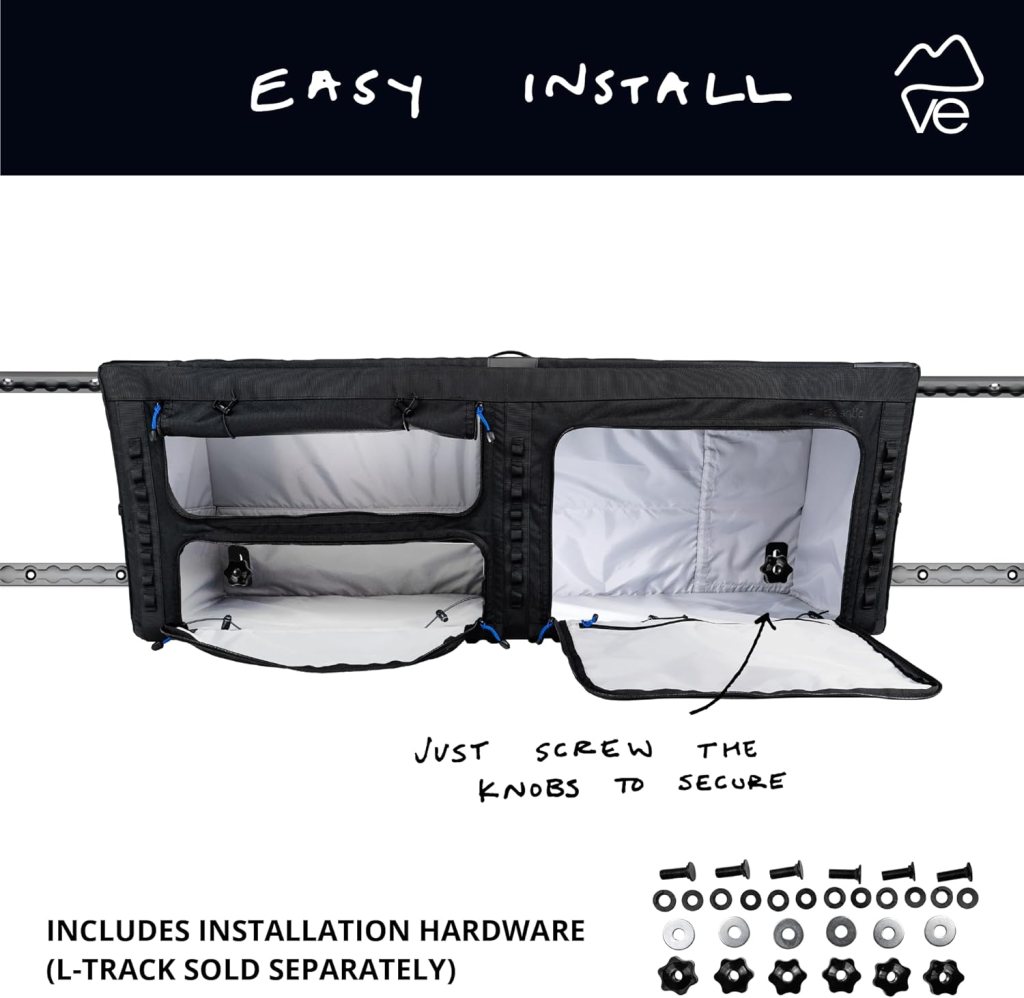 Unlike bulky wood cabinets or custom builds that require professional installation, this soft-sided cabinet arrives flat-packed and is designed for easy assembly. You’ll simply attach it to your pre-installed L-track system using the included hardware: